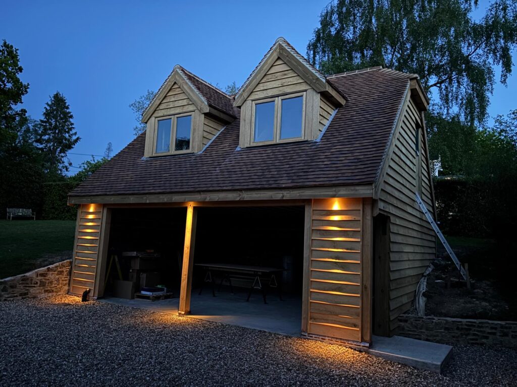 A Stunning Oak-Framed Two-Bay Garage with Family Space Above